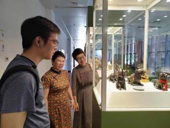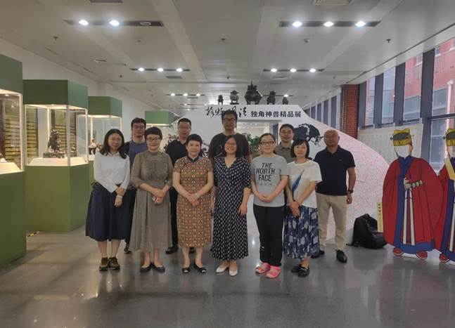 参观过程中,老师们流连于每一件精美的展品,也叹服于中华文明的源远流长。在众多展品中,代表“公平正义”的神兽獬豸吸引了大家的目光。獬豸是中国古代神话传说中的神兽,其体形如牛或羊,全身毛发浓密黝黑,双目炯炯有神,额上长着一只独角。传说中,獬豸非常聪颖、通人性,能辨别是非曲直、忠奸善恶,是司法“正大光明”、“清平公正”的象征,也是中国传统法治的符号,代表了公平正义的执法理念。据介绍,本次展览最大的亮点,是复制了獬豸冠并首次在高校校园中展示,体现了本次展览的学术追求和育人意义。