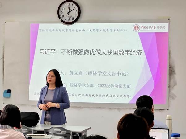 最后,黄立君老师高度肯定了党支部联合共建的学习形式,并针对本次活动进行总结。她提出,现阶段应当把握时代发展大势,站在战略和全局的高度,深刻认识新时代新征程加快发展数字经济的重大意义,老师和同学们要以开放包容、勇于创新的精神把握数字经济发展的时与势,以数字经济赋能高质量发展。活动在热烈的掌声中结束。